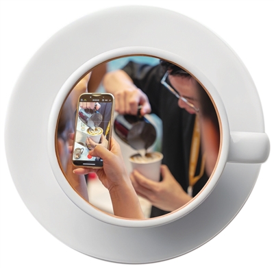 参观民众拍摄咖啡拉花过程。海南日报全媒体记者 袁琛 摄