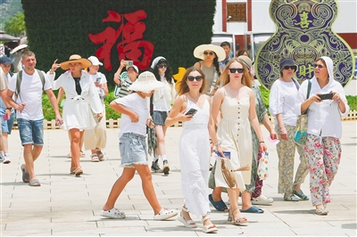 台风过后,三亚旅游业加快恢复。8月27日,众多外籍游客前来三亚南山文化旅游区游玩。海南日报全媒体记者 王程龙 摄