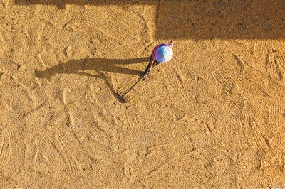 9月2日,山东省临沂市平邑县临涧镇农民在晾晒收获的玉米。