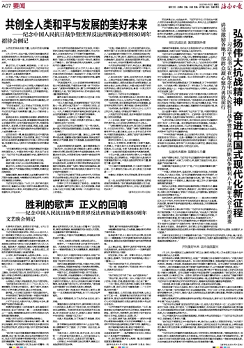 这历史性的一幕,彰显出国际社会对中国抗战历史贡献及其世界意义的由衷敬意,表达了对中国举办纪念活动的高度重视和对中国人民的友好情谊,传递着共创全人类和平与发展美好未来的真诚心愿。