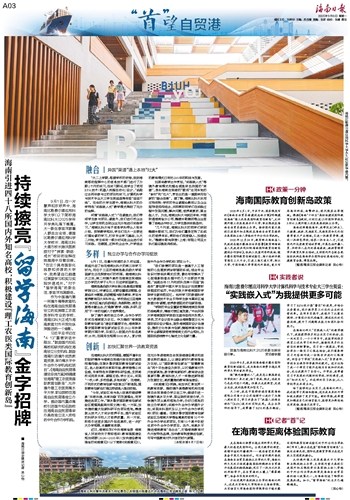 允许境外理工农医类高水平大学和职业院校独立办学、支持国内重点高校引进国外知名院校举办具有独立法人资格的中外合作办学机构等是海南自由贸易港的核心政策之一,为海南创造了难得的发展机遇。如今,“留学海南”的名片已越擦越亮。