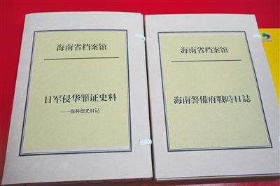 刘昌言和吴佩军捐给海南省档案局(馆)的《日军侵华罪证史料——保科德光日记》《海南警备府战时日志》档案资料。