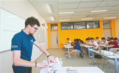 近日,在位于洋浦经济开发区的海南比勒费尔德应用科学大学,外籍教师给学生上英语课。