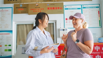 在三亚市中医院,医生为外国游客答疑解惑。海南日报全媒体记者 袁琛 摄