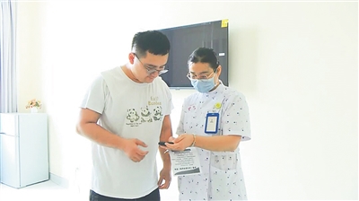 东方市医护人员指导家长在线上为孩子办理城乡居民医保。东方市融媒体中心供图