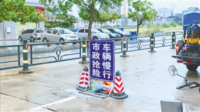 屯昌市政人员更换破损井盖后,设置提醒标识牌。海南日报全媒体见习记者 祁夏 摄