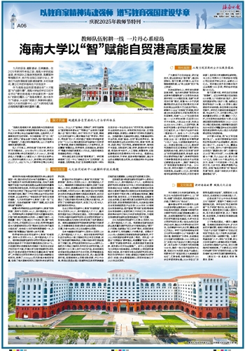 九月的琼岛,椰影婆娑、瓜果飘香。在2025年教师节来临之际,海南大学的实验室里,教师团队正围绕深海探测、南繁育种等难题攻关;地方性法规立法研讨会上,学者们为自贸港制度创新建言献策;乡村田垄间,博士们手把手指导农户改良技术……作为海南自由贸易港建设的“人才摇篮”与“创新引擎”,海南大学始终牢记习近平总书记“要支持海南大学创建世界一流学科”的殷切嘱托,以“海南有需求,海大有作为”为使命,从全球广纳贤才、深耕学科建设,依托七大协同创新中心,让广大教师成为推动海南高质量发展的重要力量。