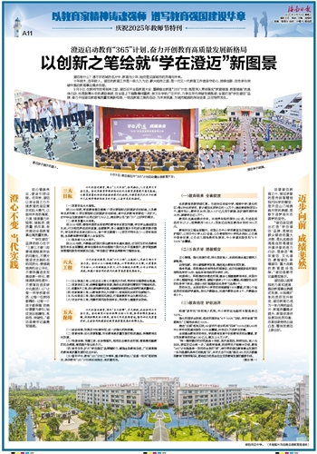 今天的澄迈教育,实施“六大工程”,立德树人,思政引领力日益凸显。澄迈以立心铸魂为根基,以资源调优为支撑,以质量跃升为核心,以创新赋能为动力,以队伍锻造为保障,以安全护航为底线,构建六维协同的现代化教育高质量发展体系。
