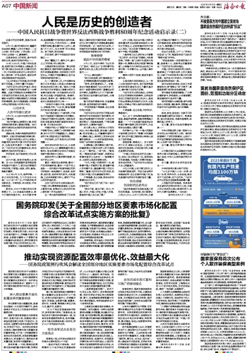 习近平总书记的庄严宣示,深刻揭示“人民是历史的创造者”这一光辉真理。这是对用鲜血和生命铸就的伟大抗战历史的深刻总结,是对为民族解放与世界和平牺牲奉献的人民英雄的深情致敬,是对为强国建设、民族复兴伟业而团结奋斗的伟大号召。