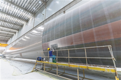 “现在看到的就是‘海上大风车’的巨型叶片,目前我们已实现批量化生产。其中,由明阳智慧能源集团股份公司(以下简称明阳集团)自主研制的MySE292海上超大型叶片长143米,在下线时创造了当时全球叶轮直径最大纪录。未来我们将研发更大尺寸叶片,进一步提升清洁能源捕获效率。”明阳东方基地负责人魏磊向记者介绍。