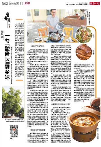周凤翎长期致力于推广崖州传统美食,对用酸豆酱调制的各类美食情有独钟。“目前,政府有关部门正在支持保平村建设酸豆鱼美食广场,希望广场建成运营后,有更多市民游客走进保平村品尝崖州风味!”他说。