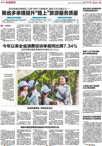 在提升旅游服务智慧化水平方面,我省将升级省旅游电子行程监管服务平台,推动三亚游艇旅游综合服务平台、万宁海陆空公共安全服务平台上升为省级平台;引入第三方社会评估机制,建立覆盖区域、业态、从业人员的旅游服务质量监测评价体系,以数据赋能服务提升。