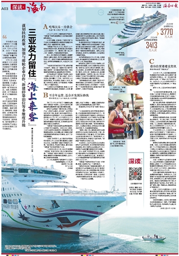 与此同时,三亚中央商务区正在谋划邮轮产业扶持政策,将支持国际邮轮航线网络建设,深化与邮轮企业战略合作,为三亚邮轮产业高质量发展提供支持与保障。