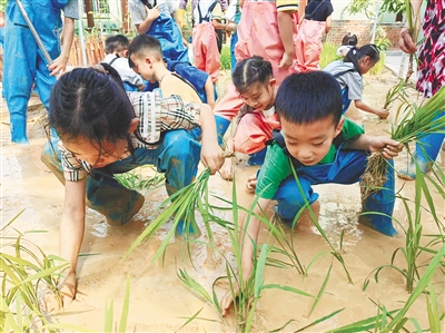 “山村”课程鼓励家长和孩子一起插秧、晒稻谷、参与“三月三”活动等,引导孩子们从小就了解村庄的节日习俗和生活习惯,爱上自己的家乡。