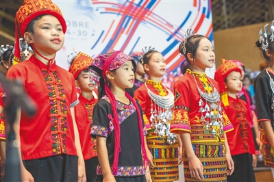 合唱团的孩子在五指山市水满乡毛纳村演唱。资料图