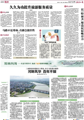 此次海南开展旅游服务质量提升年百日攻坚行动,正是以“百日攻坚”的力度,推动旅游服务制度入脑入心,让旅游服务朝着制度化、精细化方向稳步迈进。这不仅是对过往工作的巩固与升级,更是为海南旅游业未来发展“谋篇布局”。以此次行动为契机,海南需持续健全旅游服务标准体系,加强对涉旅企业和从业人员的监管与培训,畅通游客反馈渠道、及时解决游客诉求,提升整体服务水平,真正把“以游客为中心”的理念落到实处。
