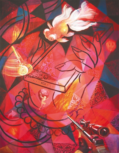 艺术家卜天在作品《无尽的催眠》中使用了古代龙纹。他说:“在黎族故事产业园,黎锦上独特的龙纹让我看到汉族黎族文化融合的痕迹,这次采风为我打开了了解黎族文化的窗口。”艺术家徐诗雨也对黎锦中的鱼形元素产生兴趣,希望结合当代社会议题如海洋保护进行再创作。