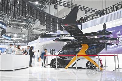 观众在2025世界制造业大会上参观一款飞行汽车。