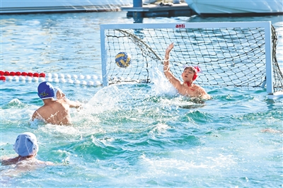 据介绍,水球项目是在游泳项目基础上,开展的趣味性、娱乐性、观赏性较强的水上运动项目。图为运动员在进行激烈比赛。海南日报全媒体记者 武威 通讯员 芦燕 文/图