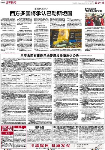 随着以色列持续扩大对加沙地带的军事行动加剧当地人道主义危机,国际社会要求落实“两国方案”的呼声进一步加强,西方多国兴起对巴勒斯坦国的“承认潮”。与此同时,以色列与美国在国际上愈发孤立。联合国秘书长古特雷斯日前表示,国际社会不应被以色列吓倒。“两国方案”是维护中东和平的唯一选项。