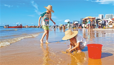 近日,海口市秀英区荣山寮村附近的鱼市热闹非凡,市民和游客争相挑选海鲜,孩童在海边尽情玩耍。海南日报全媒体记者 陈元才 摄