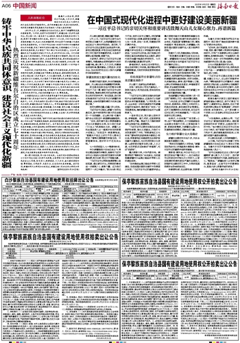 凝心聚力谋发展,同心协力创未来。让我们更加紧密地团结在以习近平同志为核心的党中央周围,全面贯彻习近平新时代中国特色社会主义思想,坚定信心、砥砺前进、久久为功,奋力建设团结和谐、繁荣富裕、文明进步、安居乐业、生态良好的美丽新疆。我们坚信,新疆的明天必将更加兴旺发达,新疆各族人民的生活必将更加幸福美满!(新华社北京9月24日电)
