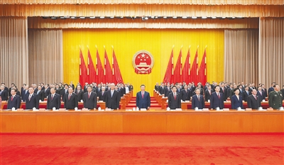 上午10时30分许,在欢快的乐曲声中,习近平等领导同志走上主席台,全场响起长时间的热烈掌声。
