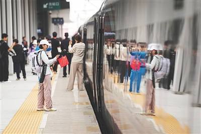 9月28日,沈(阳)佳(木斯)高铁沈白段开通运营,旅客在抚顺站准备乘车。新华社发