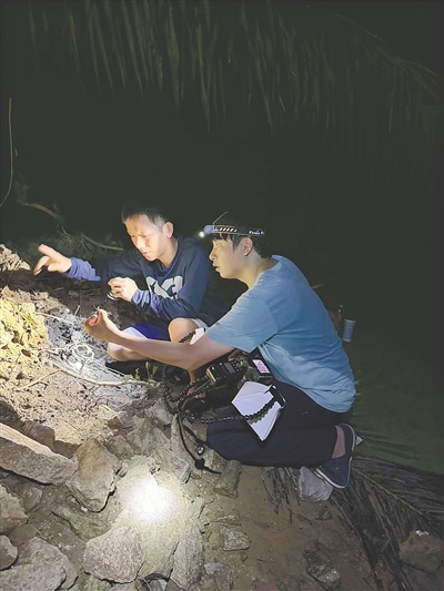 “在恶劣环境中,我要沉住气耐心在洞口蹲守,‘守洞待蟹’。”张小蜂告诉记者,一次,他在一个海边洞穴里找螃蟹。这个洞穴在涨潮时会完全被海水淹没,只能在退潮时抓紧时间找螃蟹。