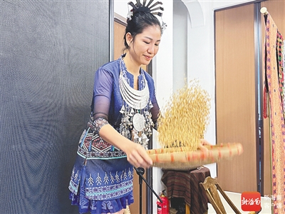 芒果种植户黄珊珊是乐团不可或缺的一员。她现在已经熟练掌握了鼻箫、灼吧等竹木乐器的演奏技巧。“乐团不只是唱歌的地方,更是学文化、传文化的地方。”她摩挲着灼吧,语气里满是自豪。在她看来,加入乐团不仅让她实现了音乐梦想,也让其有机会深入了解家乡的文化。