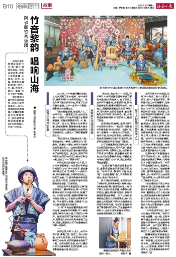 这首《奔内热海棠》,是阿卡阁竹木乐团的代表作。“‘奔内热’在黎语中的意思是‘欢迎过来玩’,但我们还有一层意思——奔赴内心的热忱。”徐月宁说,创作这首歌时,他带领乐团成员到海棠区的各个村落采风,把多种生活里的声音“装进”了歌曲。