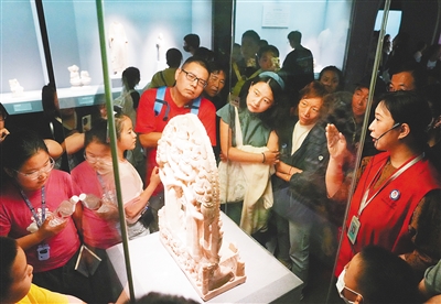 10月3日,游客在河北博物院内观展。