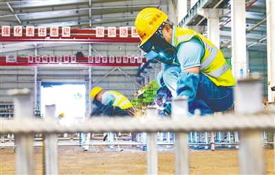 近日,在临高金牌港开发区的中铁建设建筑发展海南绿色建筑产业园,工人们坚守岗位,全力保障生产进度,确保完成年度产值目标。
