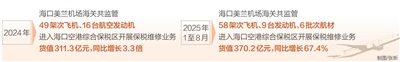 数据是最直观的证明:2024年,海口美兰机场海关共监管49架次飞机、16台航空发动机进入海口空港综合保税区开展保税维修业务,货值311.3亿元,同比增长3.3倍。2025年1至8月,海口美兰机场海关共监管58架次飞机、9台发动机、6批次航材入区开展保税维修,货值370.2亿元,同比增长67.4%。