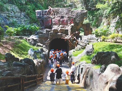 游客在海南石花水洞地质公园景区游玩。