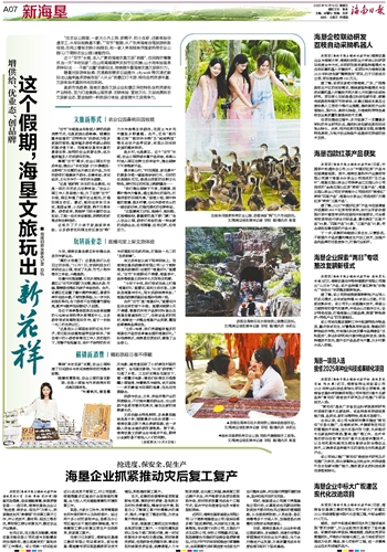 “今年下半年,我们尝试在线上打造‘海垦好礼’直播间,面向文旅市场,上架各类海垦伴手礼,延长旅游消费体验。”海垦旅游集团副总经理孙相涛介绍。
