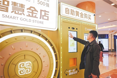 在上海市普陀区一家商场内的“智慧金店”,市民了解自助黄金购买设备。新华社发