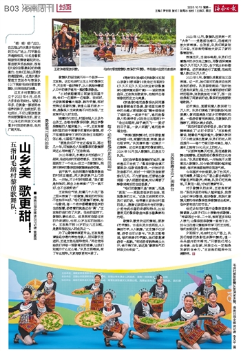 这支乡村歌舞队成立于2022年6月,成员大多来自毛纳村。短短3年多,它就像一颗被雨林滋养的种子,生根发芽,茁壮成长,不仅让黎族苗族传统歌舞重焕生机,更让大山深处的民族文化顺着乡村旅游的脉络,走向广阔天地。