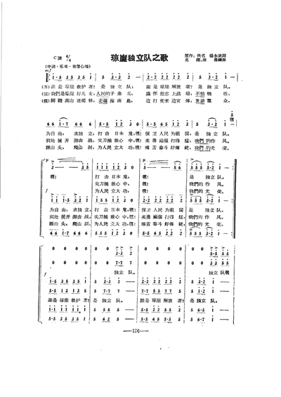 正是在这种艰苦的环境中,中共琼崖特委在冯白驹的领导下,组织创作了许多著名的抗战歌曲,其中《谁是琼崖救护者》《全琼总动员》《独立队之歌》(非《琼崖独立队之歌》)流行一时,极大鼓舞了琼崖抗战军民的战斗意志。通过对比曲谱,可以确定《琼崖独立队之歌》的原作为《谁是琼崖救护者》,两者曲谱基本相似,歌词部分相同。
