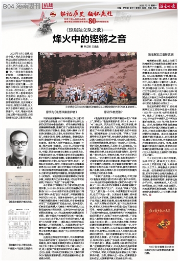 2025年9月3日晚,纪念中国人民抗日战争暨世界反法西斯战争胜利80周年文艺晚会《正义必胜》在北京人民大会堂上演。在晚会第三场“不可战胜的力量”中,一段来自天涯海角的旋律——《琼崖独立队之歌》再次响起。这首歌曲歌颂的是中国共产党领导的琼崖抗日武装力量——琼崖抗日独立队(后发展为独立总队、独立纵队)。这支队伍在日军入侵海南岛的危难时刻,挺身而出,与日本侵略者苦战6年多。一段铿锵的旋律,在抗战烽火中诞生,穿越80余载,在人民大会堂再次响起,让人无限感怀。今天,笔者从各类文献记载中抽丝剥茧,介绍《琼崖独立队之歌》的来源。