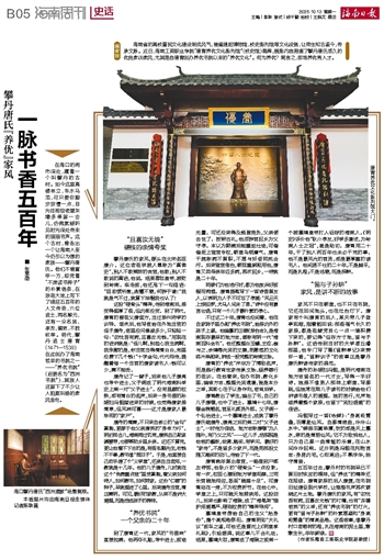 五百年过去,攀丹村的书院早已不复旧时恢宏的模样,但“养优”的精神还在延续。唐胄家族的后人唐捷,在书院旧址建设现代学校,让琅琅书声再次萦绕这片土地。攀丹唐氏的家风,有“勿忧吾有病,且喜汝无钱”的叮嘱,也有“东善培英”的义举,还有“养优书院”的灯火,更有“留与子孙耕”的朴素愿望和“身高吸霄瀣”的清高品格。这些故事,像攀丹村口老榕树的根,扎在海南的泥土里,默默生长,年年新绿。