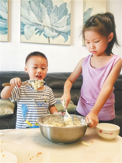 梦梦和元元在制作美食。