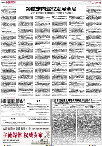 在成功驾驭中国经济发展大局的非凡历程中,全党全国人民更加坚信:习近平经济思想是做好新时代经济工作的根本遵循,是中国经济行稳致远的信心之基、动力之源。
