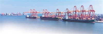 10月13日,一艘轮船满载集装箱驶离唐山港京唐港区集装箱码头。 新华社发