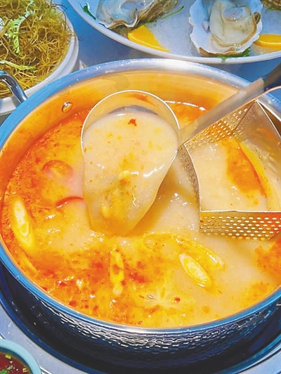 升级版—糟粕醋火锅:这是推动糟粕醋走入大众视野的拳头产品。将糟粕醋作为火锅汤底,其酸辣能很好地激发海鲜的鲜美,并去腥解腻。首选涮品当然是海南本土的各式海鲜:马鲛鱼、海虾、鲍鱼、蛏子……此外,海南的牛肉、牛杂、鸭肠、豆腐、地瓜叶等,也是绝配。这种围炉而食的方式,将糟粕醋从个人小吃提升为社交美食。