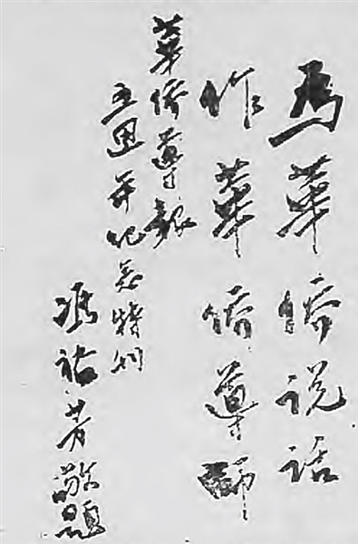 1947年,冯裕芳为《华侨导报》的题词。 林芳华 提供