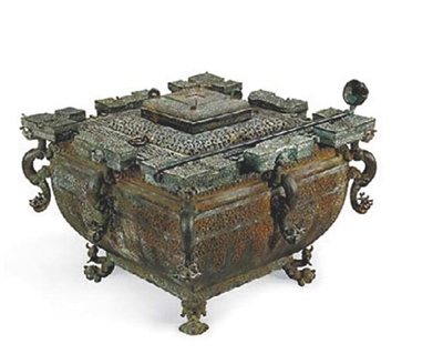 此外,两人对饮的漆耳杯,直接复制湖南博物院“君幸酒”漆杯的云气纹,杯沿的云气纹和铭文清晰可见;用来冰酒的铜鉴,原型是湖北省博物馆的战国铜鉴,这种贵族专用的“古代冰箱”,在片中成了身份的象征;煮肉的染炉,纹路都照搬自陕西历史博物馆的四神兽纹青铜染炉。这些器物不是背景板,而是暗藏身份象征的叙事工具,比如染炉的设计,就结合了汉代服饰的颜色象征,反映了当时的社会等级。袁绍所穿的紫色战袍,看似平常,实则蕴含着汉代的等级秘密——紫色在那一时期被视为珍贵的“间色”,其染料提取困难重重,仅限于贵族使用,这恰恰映衬了他“四世三公”的显赫出身。而曹操的黄色衣袍,暗示其寒门崛起。一顿饭,吃出了汉末的阶级格局。