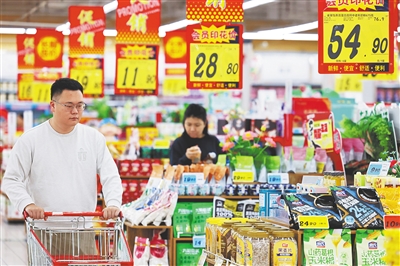 消费者在山东省枣庄市一家超市选购商品。