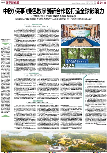 合作区核心是导入国际资源,通过中欧合作引领学术、标准前沿,同步实现生态保护、经济发展和扩大开放的目标,将探索形成中欧互通互认的绿色化数字化协同发展模式、标准体系与实施机制,打造实现内涵式增长型的可持续发展与碳中和“保亭模式”县域示范。