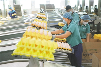 近日,澄迈县福山镇,海南农垦300万只蛋鸡全产业链(一期)项目蛋品车间内,工人分拣打包“无抗”鸡蛋。这些“无抗”鸡蛋目前已经进入旺佳旺、零食有鸣和罗森等线下商超、便利店。